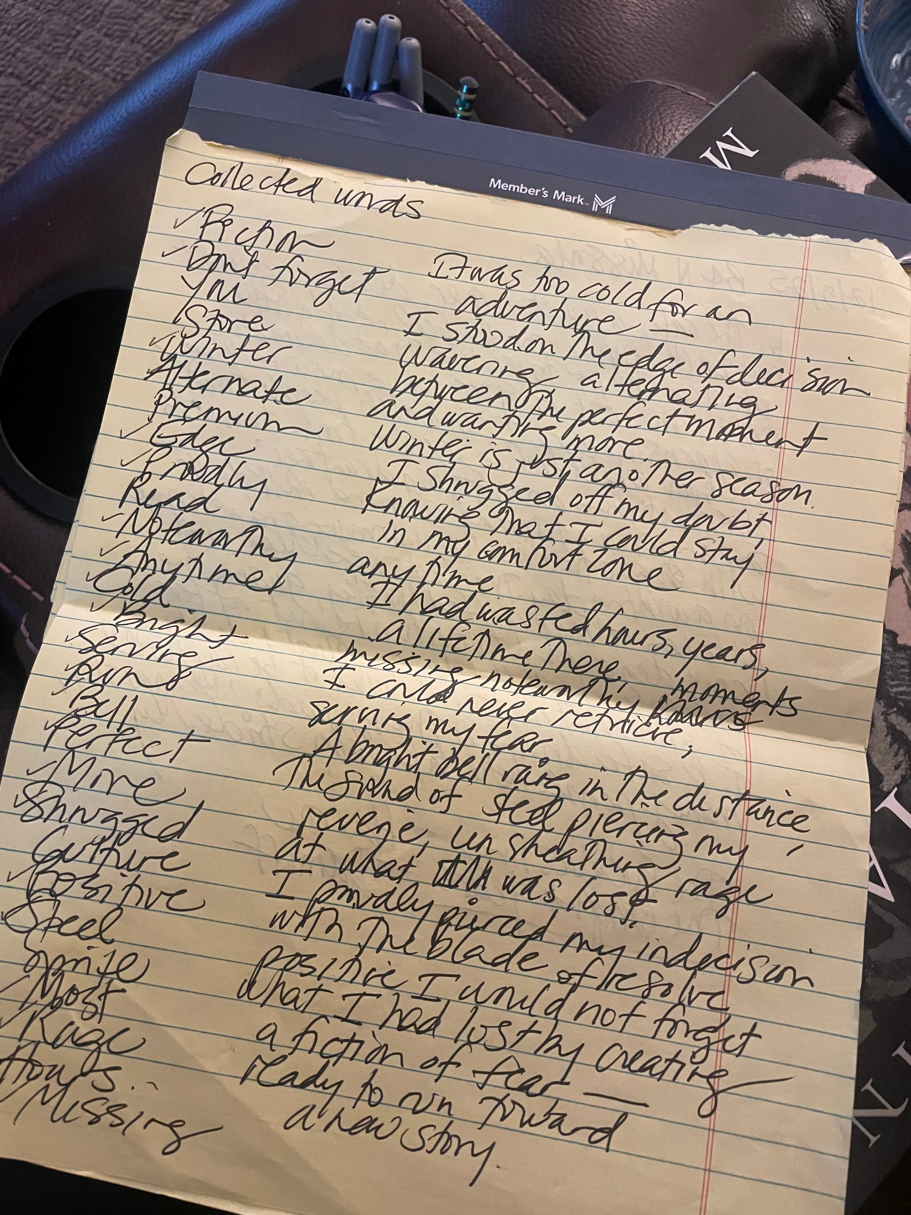 The bookstore, of course, was a rich source of words! I looked around me and began to jot down as many words as I could without overthinking it, which is half the battle in uncorking the ability to write. Just write! Here is my list, and the poem I created from it.