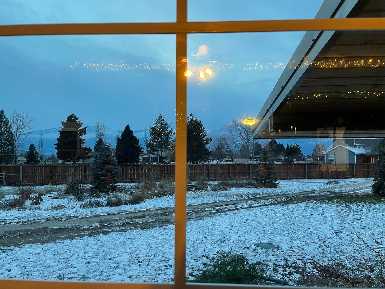 Yesterday the roads were clear, not yet icy, so I drove to Missoula to sit in the cafe at Barnes and Noble, body doubling with strangers to motivate me to write a little. I used an idea from Charlotte Donlon’s Spiritual Direction for Writer’s site, where she has Daily Nourishment prompts, with a focus on Advent this month. The prompt I used suggested collecting words from your surroundings and creating a “found poem.”